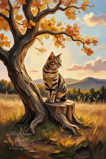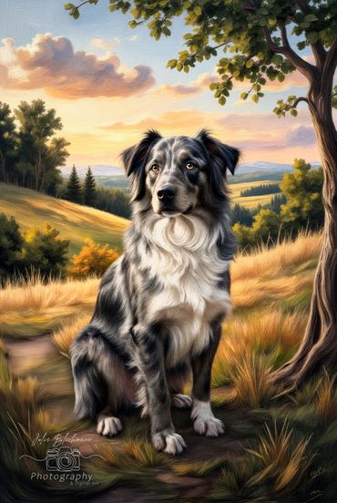 If time has flown by or your pet can’t participate in a traditional photo session, you can still have a beautiful, one-of-a-kind piece of art to cherish. I create custom portrait illustrations using your favorite photos. From photorealistic portraits to soft, painterly scenes, whimsical cartoons, or even lightly fantasy-inspired illustrations, each piece is carefully crafted to match your vision. With today’s creative tools, I create heartfelt artwork that celebrates your pet’s unique spirit. Whether you’re looking for a joyful keepsake or a meaningful pet memorial portrait, all it takes is a little imagination — and a few great photos.